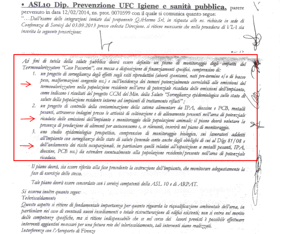INCENERITORE CASE PASSERINI: il parere della ASL!